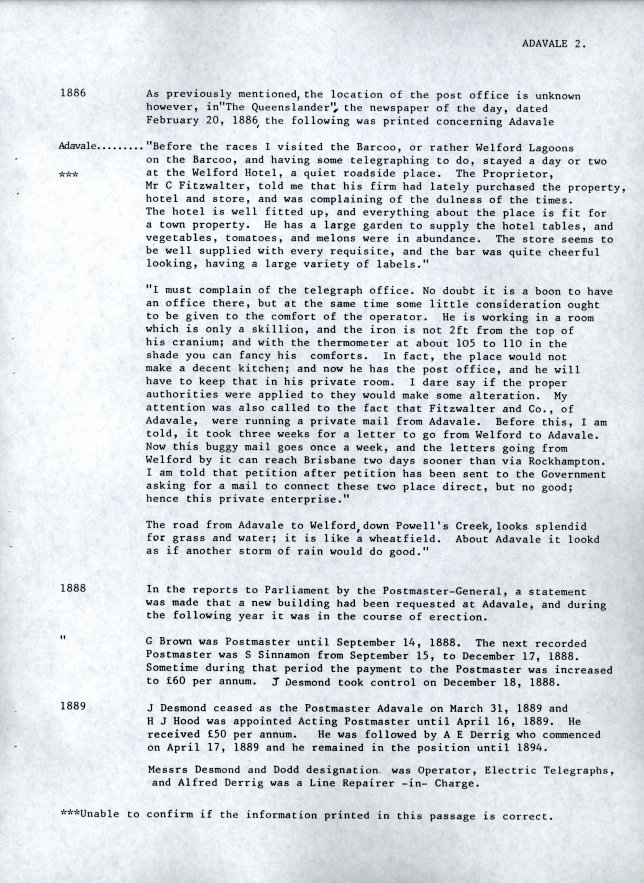 Adavale datestamp type 1a dated 15 January 1885. Rated 5R. Seen in the Queensland Stamp Collecting Facebook Group