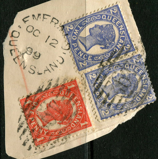 Emerald datestamp type 3a dated 26 May 1882. Rated 5R. Seen in the Queensland Stamp Collecting Facebook Group