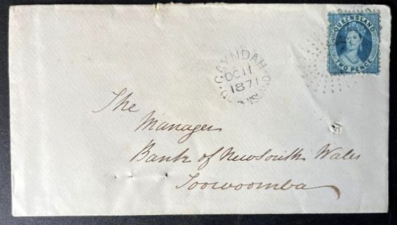 Gayndah datestamp type 1b dated 11 October 1871. Rated 3R. Seen in the Queensland Stamp Collecting Facebook Group