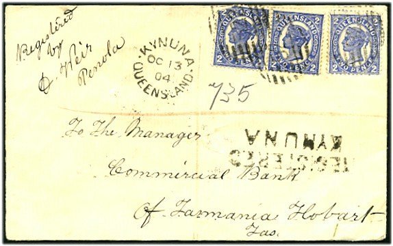 Kynuna datestamp type 6. Dated 27 April 1911. Rated 4R. Seen in the Queensland Stamp Collecting Facebook Group