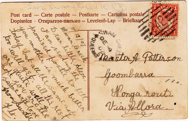 Swan Creek date stamp type 3a. Dated 14 August 1907. Rated 3R. Seen in the Queensland Stamp Collecting Facebook Group
